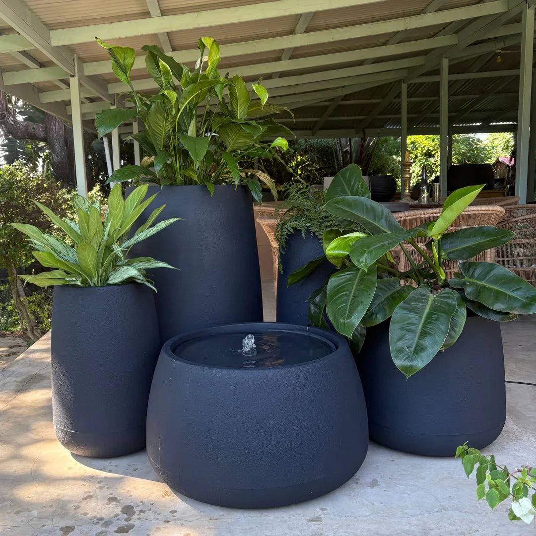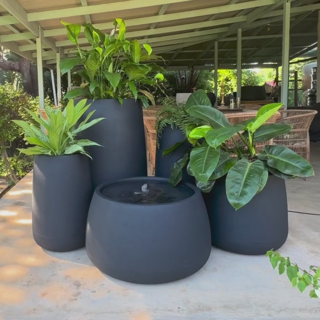 This curated five-piece collection includes Bios Tall Small, Bios Tall Medium, Bios Tall Large, Bios Medium planters, plus the bestselling Bios Low as a stunning water feature—perfect harmony of sleek design and soothing functionality.